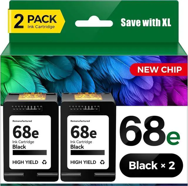 Product Name: 68 Black Ink Cartridges High Yield Replacement for HP 68 68e 68XL Ink Cartridges Combo Pack Work with HP Envy 6155e 6555e 6152e 6552e 6558e 6100e 6500e All-in-One Printers 2-Pack With Chips