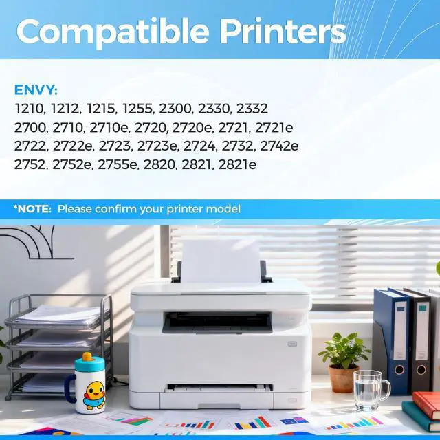 Compatible with HP Envy 6152e, 6155e, 6552e, 6555e, 6558e, 6100e, 6500e All-in-One printers that use HP 68 and 68e ink cartridges. Installs easily and works instantly no firmware errors or recognition issues.