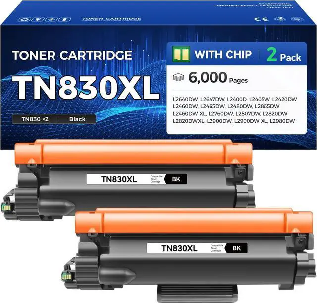 Package Contains: 2 New TN830XL black toner cartridges (Total Page Yield 6,000).