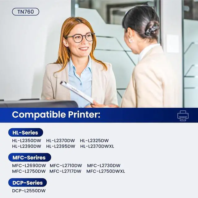 Printer Compatibility: tn760/tn730 black toner compatible for MFC-L2710DW MFC-L2730DW MFC-L2750DW MFC-L2750DWXL; DCP-L2550DW; HL-L2350DW HL-L2370DW HL-L2370DWXL HL-L2390DW HL-L2395DW series printer