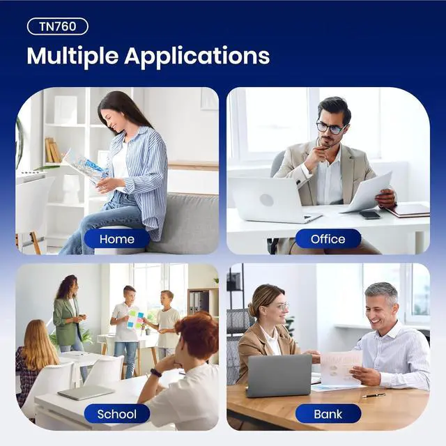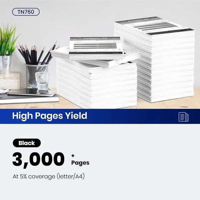 High Page Yield: Up to 3000 Pages per TN760 toner, 12,000 Pages in tatal (Letter/A4, at 5% coverage)