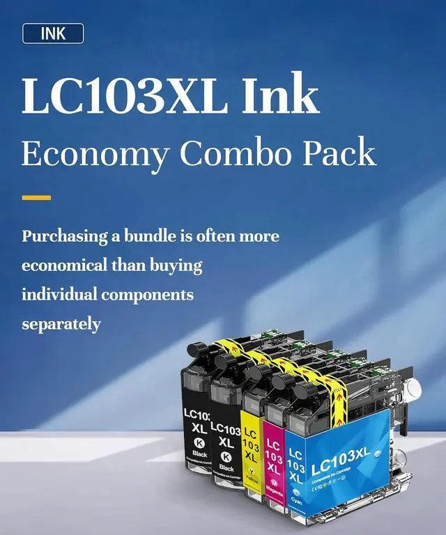Package Contents: 2 x LC103BK LC103 Ink Cartridges Black, 1 x LC103C LC103 Ink Cartridges Cyan, 1 x LC103M LC103 Ink Cartridges Magenta, 1 x LC103Y LC103 Ink Cartridges Yellow ( 2x Black, 1x Cyan, 1x Magenta, 1x Yellow LC103XL)