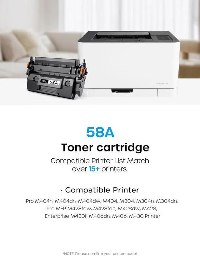 Printer Compatibility: 58A CF258A Toner Cartridge (with chip) compatible with HP Laserjet Pro M404n M404dn Pro MFP M428fdw M428 M428fdw M428fdn, Pro M404 M404dw M304 Enterprise M430f M406dn Printer