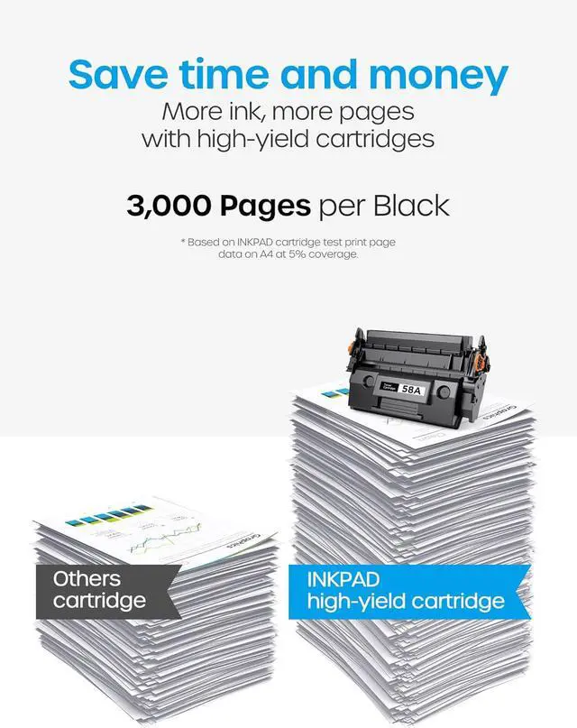 High Page Yield: 58A CF258A Toner Cartridge up to 3,000 Pages per Cartridge (Letter/A4, at 5% Coverage)