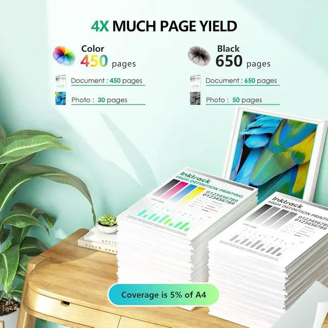 Estimated Page Yield (approx.): Up to 669 pages for hp 65xl black ink cartridge, 427 pages for hp 65 color ink cartridge 65XL high yield (with 5% coveragae*A4 paper)
