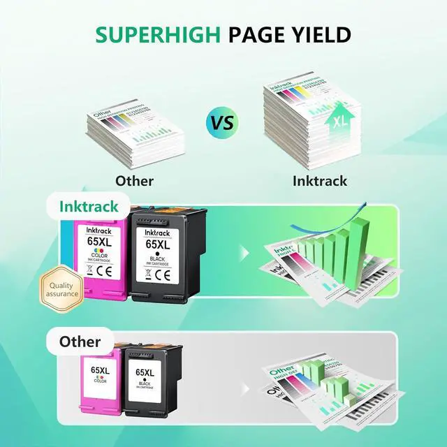 High Quality: All inktrack for hp ink 65 65xl 65 xl are equipped with the latest upgraded chips to ensure perfect compatibility with printers and excellent print quality