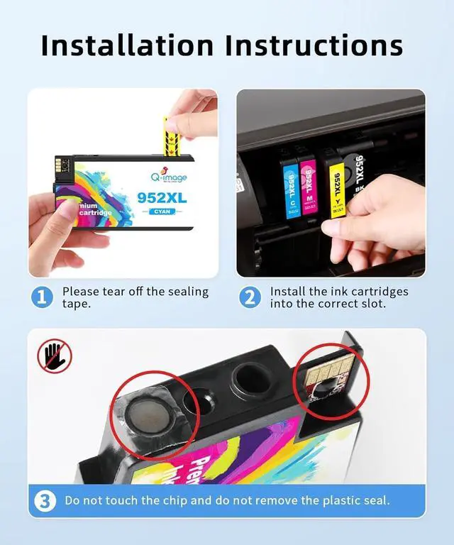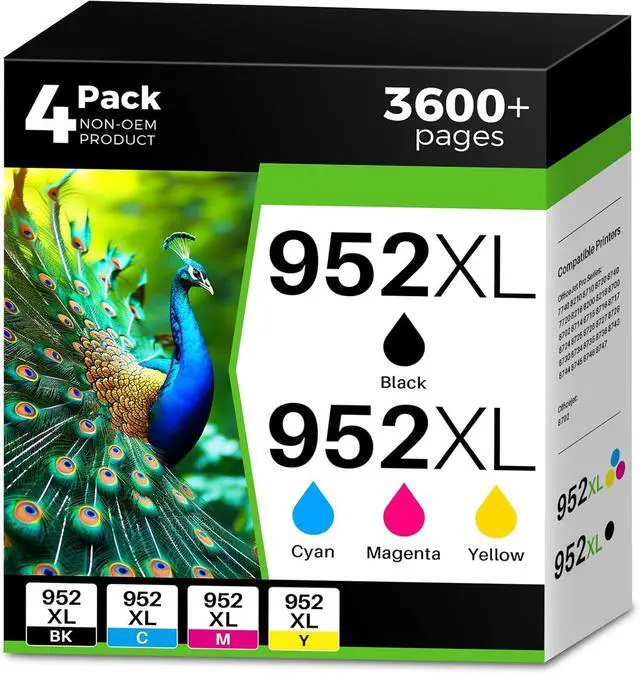 High Page Yield:2000 pages per 952xl black ink cartridge,1600 pages per 952xl color ink cartridge(Cyan Magenta Yellow),2X more pages than standard compatible 952 ink cartridges