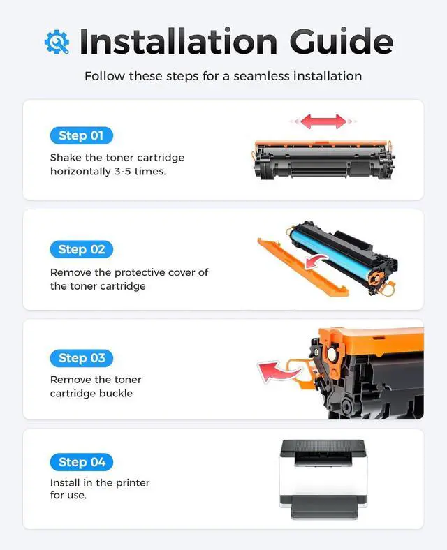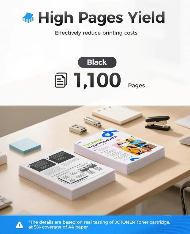 The latest chip version: The JCTONER toner cartridges are equipped with the latest version of built-in chips, ensuring perfect compatibility between each toner cartridge and the printer. This enables you to print efficiently while maintaining stability and reliability, making installation convenient without the need for manual adjustments. All JCTONER toner cartridges have undergone strict quality testing and have obtained ISO9001 certification. High-quality toner cartridges can meet the demand for high printing volume. The fine toner ensures clear and stain-free printing results and extends the lifespan of the printer. You can purchase with confidence.