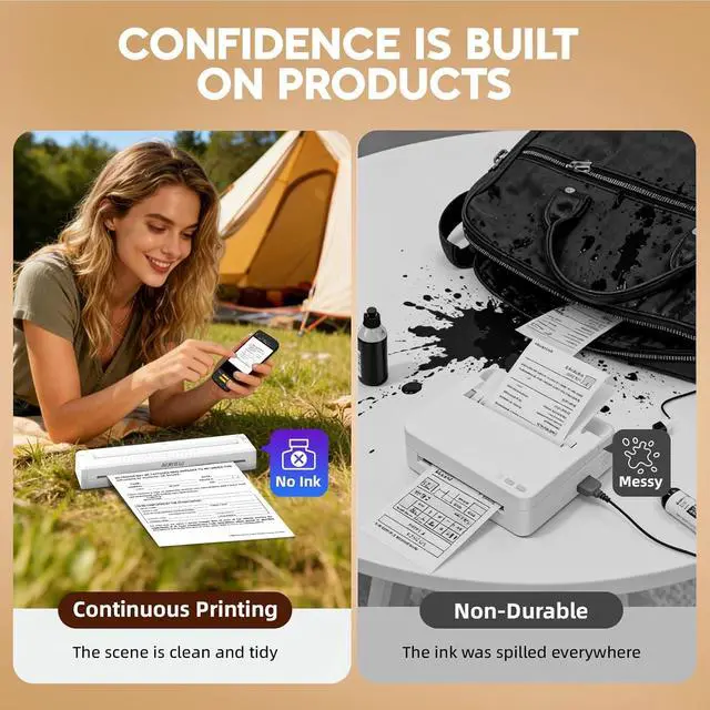 Eco-Friendly & InklessAs a premium inkless document printer, it features advanced thermal printing technology with 0 ink, 0 ink cartridges, and 0 waste say goodbye to ink clogs, messy spills, and the hassle of frequent replacements for good! Only $0.1 per thermal paper sheet, cutting your printing costs by 90% compared to traditional ink printers. 10 sheets of thermal test paper are included in the package, so you can print right out of the box. Note: Only compatible with Yirigui Black Label Thermal Paper. Using other thermal paper may result in failed continuous printing or misaligned prints.