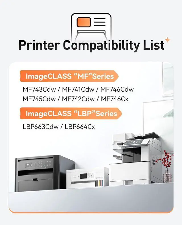 Compatible Printers: Compatible with Canon ImageCLASS MF743Cdw MF741Cdw MF746Cdw MF745Cdw MF742Cdw MF746Cx LBP663Cdw LBP664Cx Series Printers.