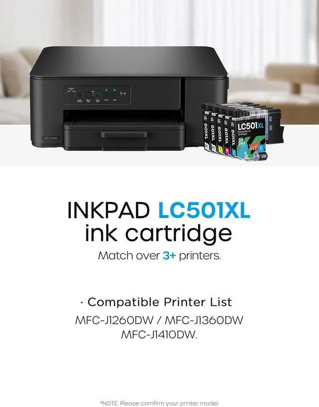 Compatible Printers: LC501XL ink cartridges set work for MFC-J1260DW, MFC-J1360DW, and MFC-J1410DW Color Inkjet All-in-One Printers.