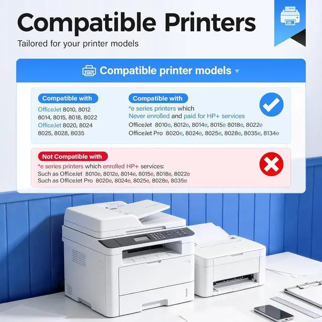 Compatible printers: 910xl ink cartridges for hp printers OfficeJet 8010, 8012, 8015, 8018, 8022, OfficeJet Pro 8020, 8021, 8022, 8023, 8024, 8025, 8026, 8028, 8035 Models