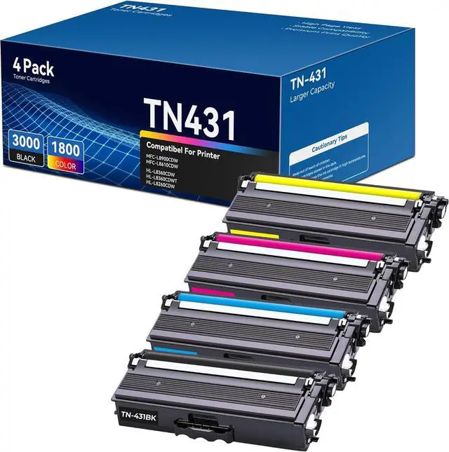 Package Content: 1 x black TN431 toner, 1 x cyan TN431 toner, 1 x magenta TN431 toner, 1 x yellow TN431 toner (TN-431 toner cartridges 4 pack).