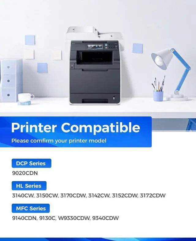 Compatible Printers: Compatible with Brother DCP-9020CDN, HL-3140CW, HL-3150CW, HL-3170CDW, HL-3142CW, HL-3152CDW, HL-3172CDW, MFC-9140CDN, MFC-9130CW, MFC-9330CDW, MFC-9340CDW Series Printer.