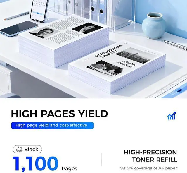 • Page Yield: Prints up to 1,100 pages per cartridge at 5% coverage