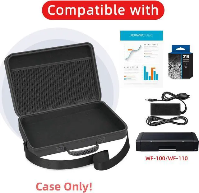 All-in-One Storage Solution for Your Epson Workforce Printer:Designed specifically for the Epson Workforce WF-100 / WF-110 Wireless Color Mobile Printer, our storage box offers a comprehensive solution to keep your printer, power cord, ink cartridges, and paper all in one place. The internal compartment perfectly fits the printer, while the open-top mesh pocket provides easy access to your essential accessories.