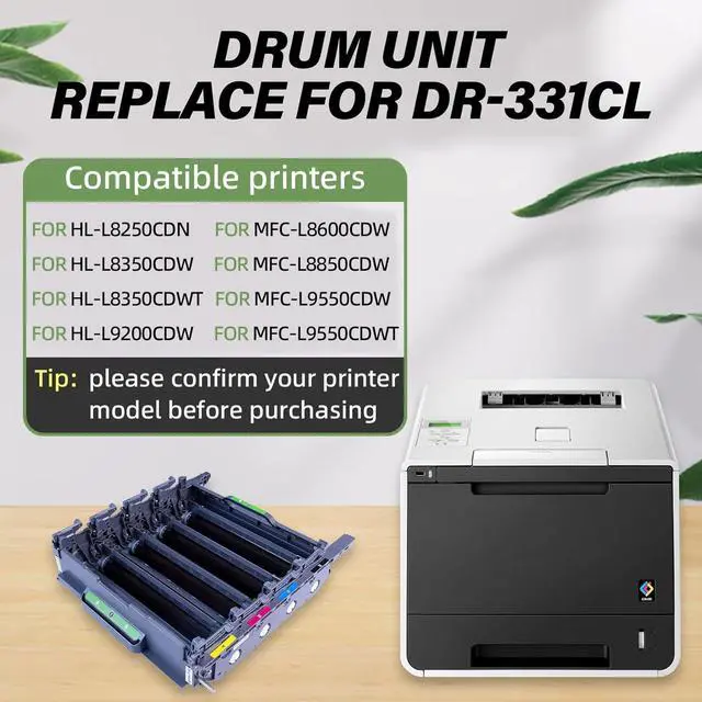 COMPATIBLE MODELSDirectly compatible with Brother Printer HL-L8250CDN, HL-L8350CDW, HL-L8350CDWT, HL-L9200CDW, MFC-L8600CDW, MFC-L8850CDW, MFC-L9550CDW and MFC-L9550CDWT. Please refer to your user manual before purchasing to ensure compatibility. (Replace for DR331CL)