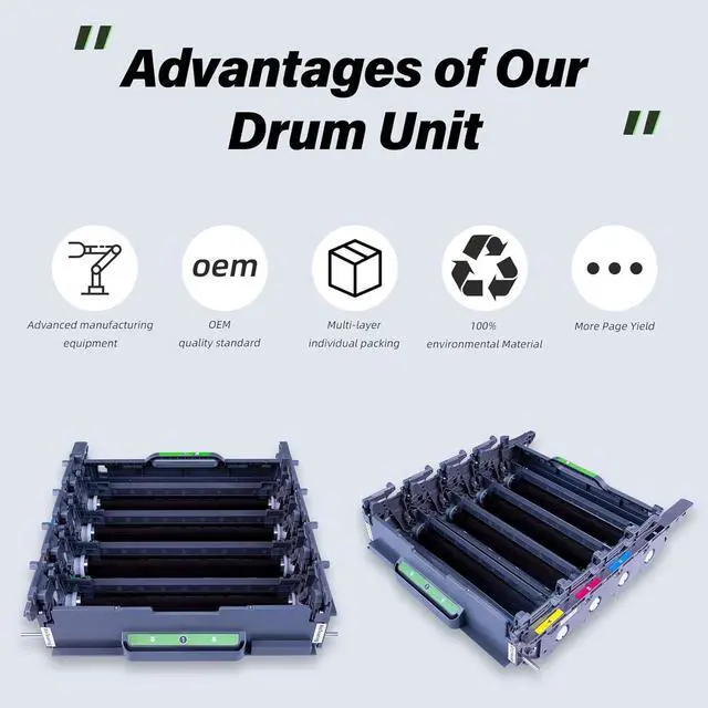 OEM STANDARDThis Drum Unit for DR331CL is manufactured in accordance with OE specifications. Meet or exceed OEM standards and can be directly installed. The drum body can fit perfectly with Brother printers; the 4 toners slots can be perfectly compatible with the correspondents toners, ensure the stability of use.