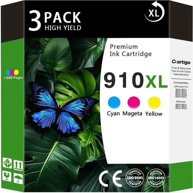 Package Contents: 3 Pack 910XL Ink Cartridges, 1 x Cyan 910XL Ink, 1 x Magenta 910XL Ink, 1 x Yellow 910XL Ink