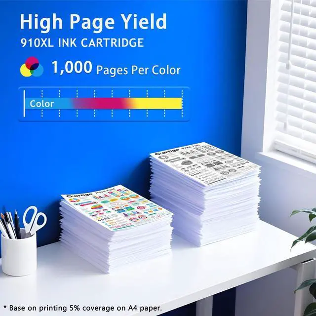 High Page Yield: 1,000 Pages for 910XL Color Ink Cartridge (Letter A4, at 5% coverage)