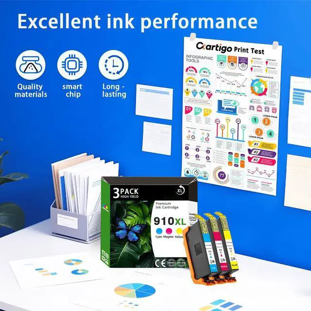 High quality: Our 910XL Ink Cartridges deliver vibrant, smudge-free prints with sharp text and rich colorsperfect for businesses, schools, hospitals, or frequent home users who demand professional results