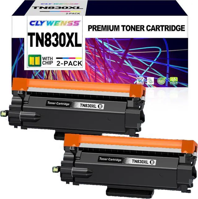 Package Content: CLYWENSS TN830XL Black Toner Cartridge Replacement for Brother TN830XL TN830 TN830XL/V, 2-Pack