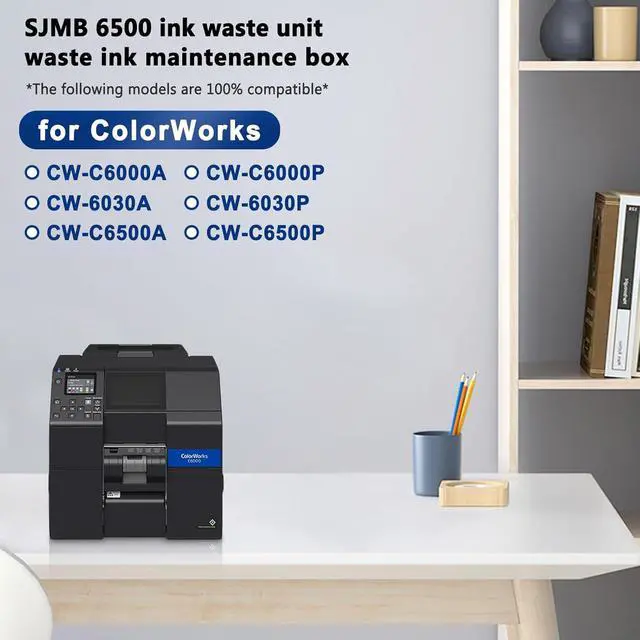 Compatible Printer: The SJMB 6500 maintenance box compatible with ColorWorks CW-C6000A/CW-C6000P/CW-6030A/CW-6030P/CW-C6500A/CW-C6500P