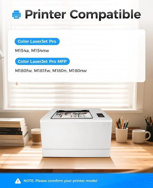 Compatible Printers: Compatible with HP Color LaserJet Pro M154a M154nw Color LaserJet Pro MFP M180fw M181fw M180n M180nw Printers.