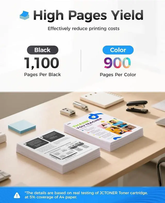 High-Yield: up to 1,100 pages per 204A Black and 900 pages per Color toner cartridge (Total 3,800 pages, 5% coverage).