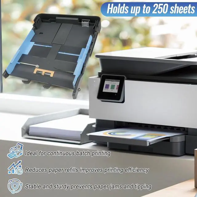 250-Sheet Large Capacity Boosts Printing Efficiency: Holds up to 250 sheets of paper ideal for continuous batch printing. Significantly reduces paper refills by 60%, saving time and increasing productivity for office/home workflows.