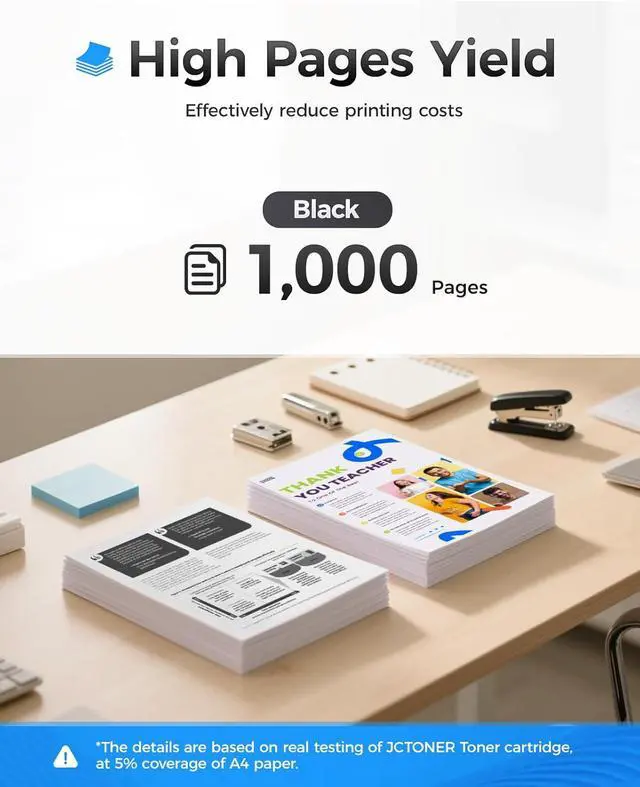The latest chip version: The JCTONER toner cartridges are equipped with the latest version of built-in chips, ensuring perfect compatibility between each toner cartridge and the printer. This enables you to print efficiently while maintaining stability and reliability, making installation convenient without the need for manual adjustments. All JCTONER toner cartridges have undergone strict quality testing and have obtained ISO9001 certification. High-quality toner cartridges can meet the demand for high printing volume. The fine toner ensures clear and stain-free printing results and extends the lifespan of the printer. You can purchase with confidence.