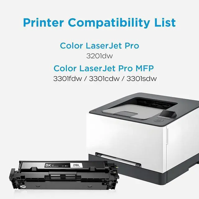 Guaranteed HP Printer Compatibility A seamless replacement for HP 218A/W2180A series cartridges. Engineered for flawless performance with popular models like the HP Color LaserJet Pro MFP 3301fdw, 3301cdw, and 3201dw wireless printers, ensuring perfect fit and function.