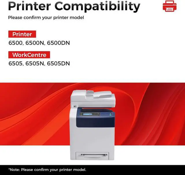 Compatible Printer: Compatible with Xerox Phaser Series: 65006500N6500DN, WorkCentre Series: 6505, 6505N, 6505DN Printer; Compatible Toner Model: 106R01597, 106R01594, 106R01595, 106R01596