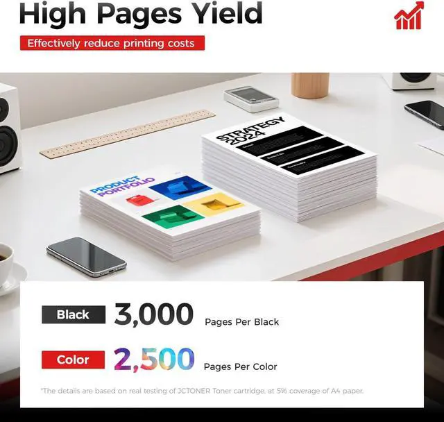 High Page Yield: 3,000 pages for Black and 2,500 pages for Color toner cartridge (Letter/A4, at 5% coverage)
