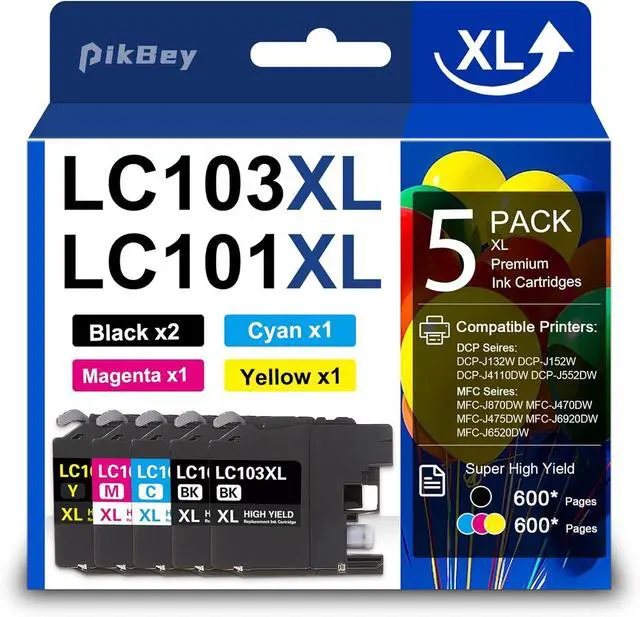 Package Include: 5-Pack LC103XL Ink Cartridges(2BK/1C/1M/1Y)