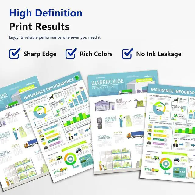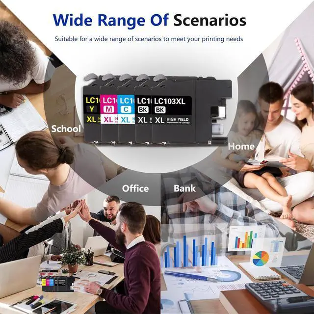 Delivers Sharp Texts, Crisp Images, and Stable Compatibility, No Fading, No powder leakage, No StreakOur LC103XL Ink Cartridges provides the printing experience vital for your printing productivity