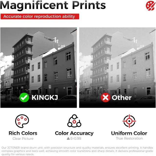 Professional & Reliable: KingKJ toner cartridge is produced with ISO-9OOI and ISO-I19OOI standards, ensuring stable quality printouts and seamless compatibility