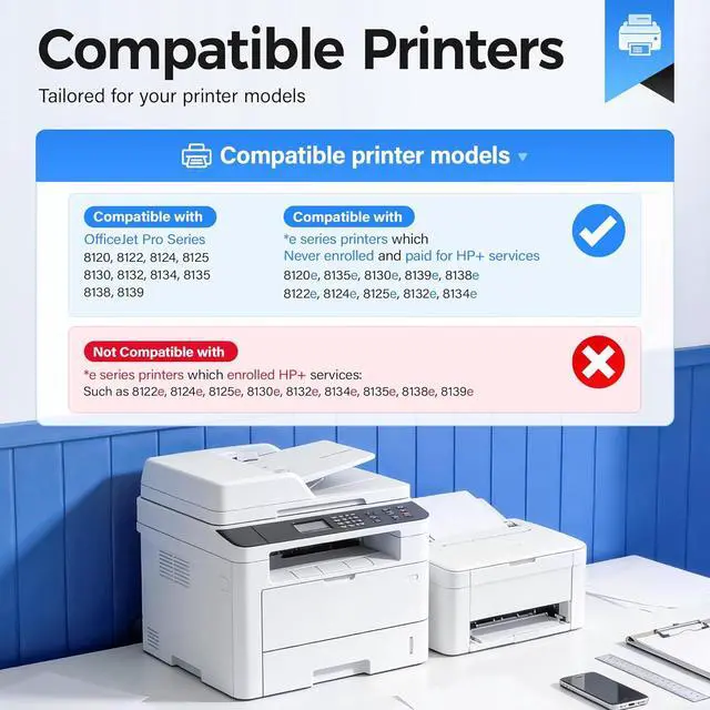 Compatible Printers: 923e Ink Cartridges Combo Pack Compatible for *e series printers which Never enrolled and paid for + ( instant ink) services, such as OfficeJet Pro 8122e, 8124e, 8125e, 8130e, 8132e, 8134e, 8135e, 8138e, 8139e Printer