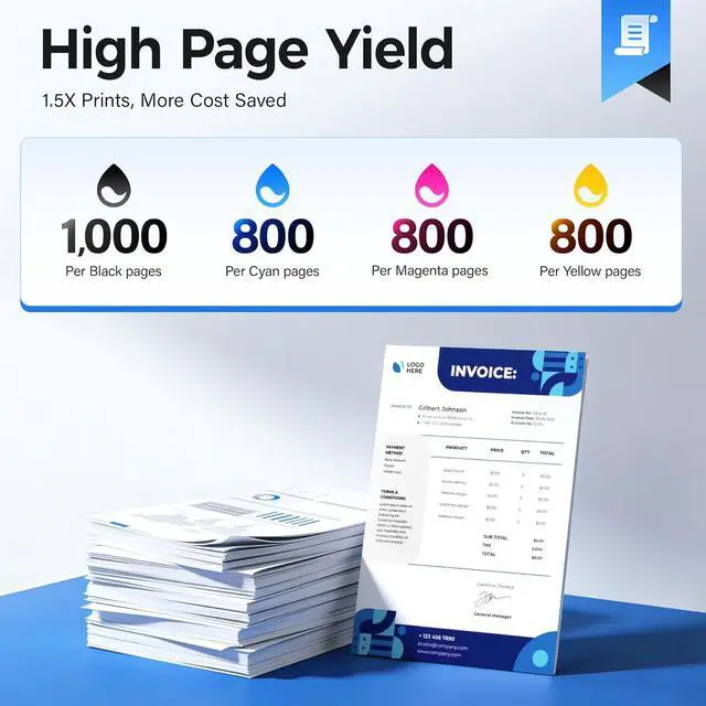 High Page Yield: It yields up to 1,000 pages for each 923XL Black Ink and 800 pages for each 923XL Color Ink at 5% coverage (A4e letter)