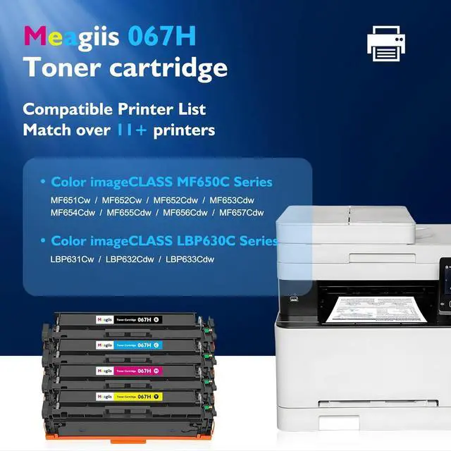 Premium Quality: Meagiis 067H Toner Cartridges can be instantly identified by your printer and work perfectly, making daily documents, reports, letters, graphics and photos very clear, vivid and crisp. No leaking, no fading, no streaks. High quality guaranteed.