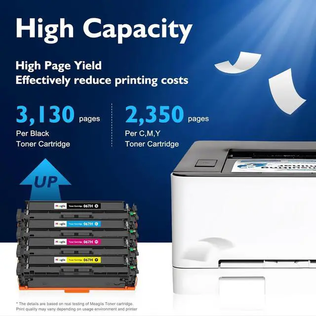 High Page Yield: Up to 3,130 pages per 067H black toner, 2,350 pages per 067H color toner based on 5% coverage (Letter/A4), ideal for users with high-volume printing needs and reducing frequent replacement