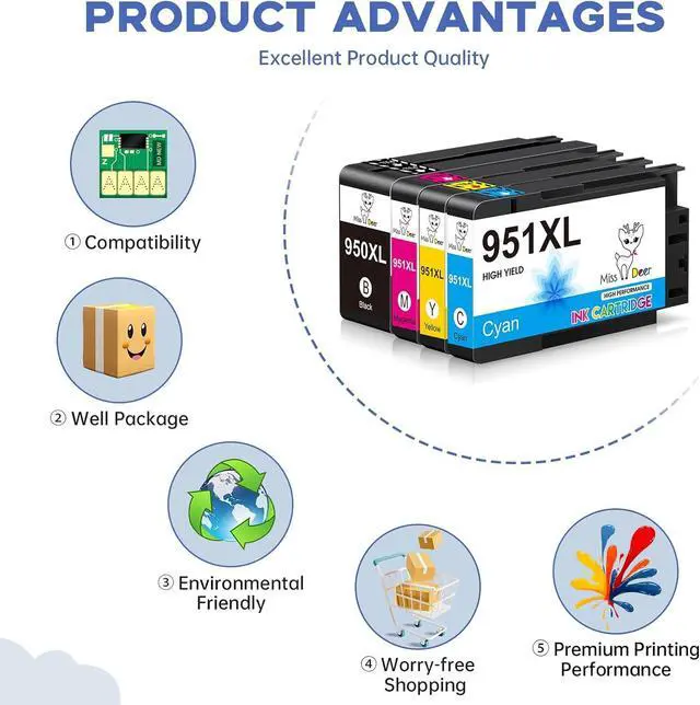 High Compatibility: Miss Deer Compatible Ink Cartridge Replacement for HP ink 950xl & 951xl combo pack are equipped with the latest upgraded chips to ensure high compatibility with HP printers version