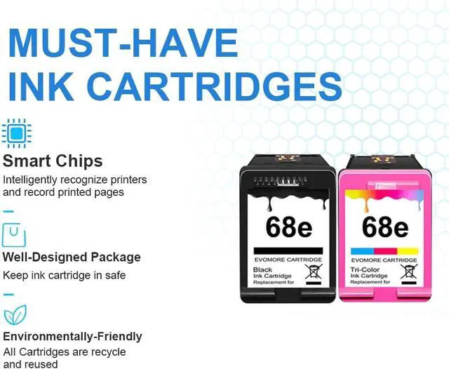 Feature: Smart chips to ensure identify your printer intelligently. Strictly test to comfirm the compatibility of remanufactured for hp 68 ink cartridge combo pack. Well-package keeps 68 for hp ink cartridges in good condictions.