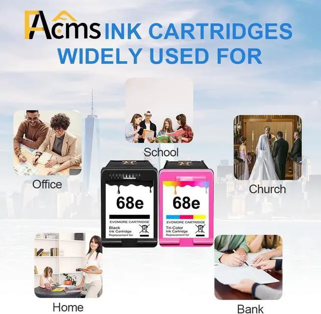 Package Contents: 2 Pack of Remanufactured for 68e Ink Cartridges Black and Color Combo Pack (1 x Black,1 x Color)