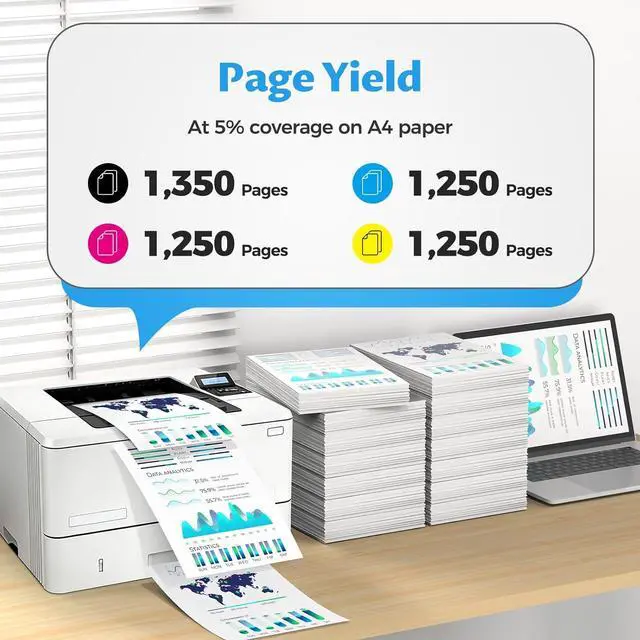 206A Toner Cartridges 4 Pack Page Yield: 206A black toner up to 1,350 pages, 206A color toner up to 1,250 pages (Letter/A4, at 5% coverage)