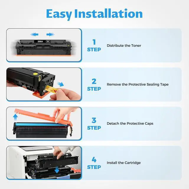 Professional Grade Results: Achieve laser-sharp text, vivid color graphics, and consistent, smudge-free output. Our compatible 206A 4 pack toner set delivers the precision and reliability you need for all your printing projects.