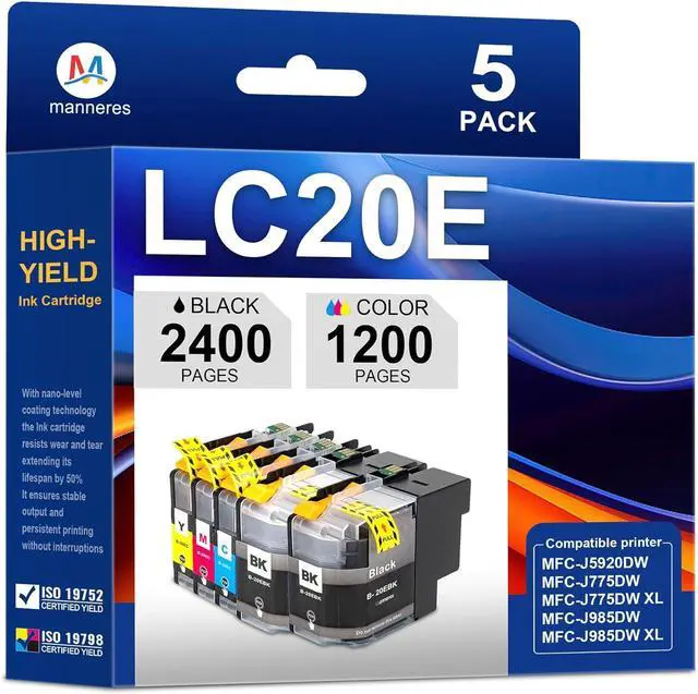 Package contents: 5 Pack LC20E Ink Cartridges (2Black 1Cyan 1Magenta 1Yellow )