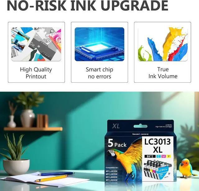 Includes: 5 Pack for LC3013XL ink cartridges(2 x Black, 1 x Cyan, 1 x Magenta, 1 x Yellow) for printers to perfect balance of efficiency & cost control