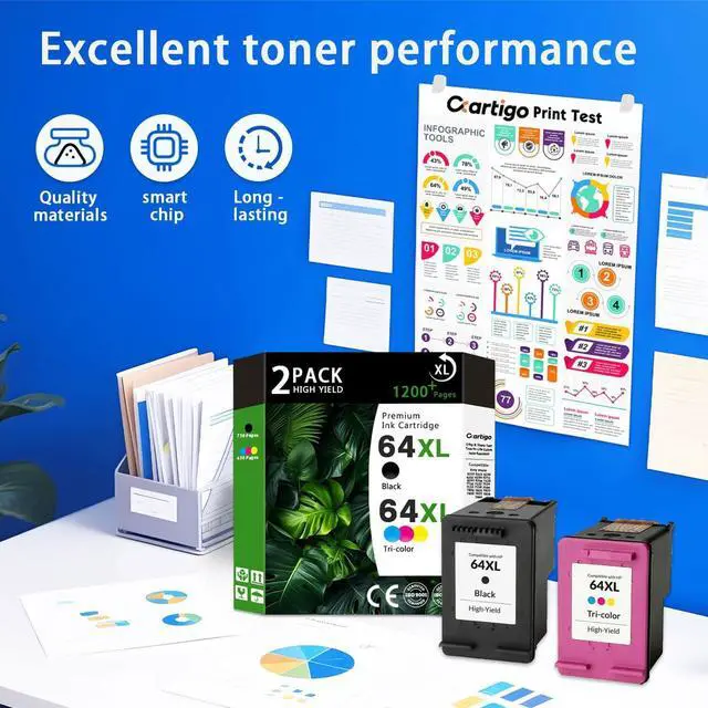 High quality: Our 64XL Ink Cartridges deliver vibrant, smudge-free prints with sharp text and rich colorsperfect for businesses, schools, hospitals, or frequent home users who demand professional results