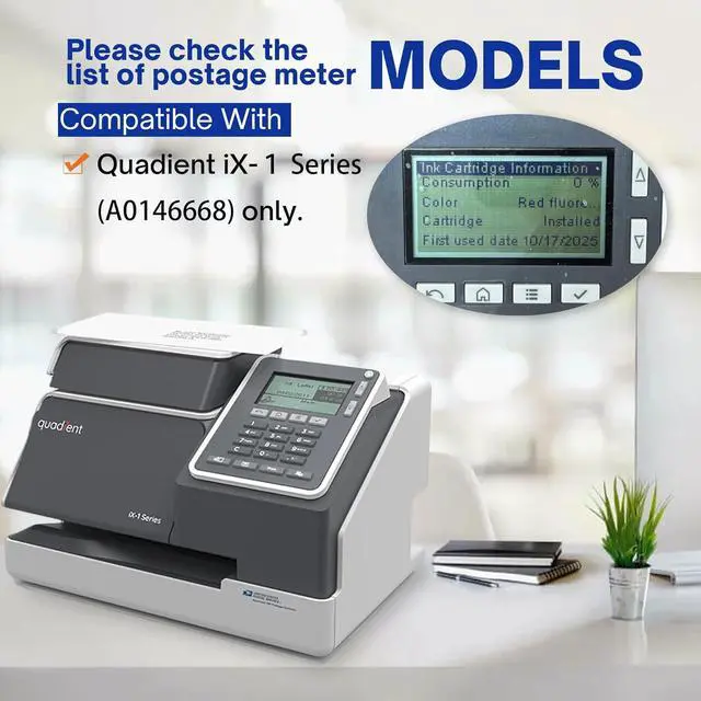 Compatibility: IXINK1 ink Cartridge for use with Neopost Quadient Hasler iX-1 Series postage franking machines.